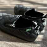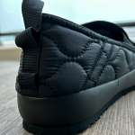 ちなみに、かかとは踏めるタイプ。テントの出入りや近所へ買い物に行くときなど、ファスナーの開け締めすらも煩わしいときにうってつけ! 手を使わずノールックで履けるのは地味にうれしいポイント。なお、カラビナが取り付けられるループが備わっているので、カバンに吊り下げれば収納スペースを圧迫することなく持ち運べます。