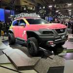 エクステリアは、北米で大人気のロッククローリングのイメージを盛り込んでいて、上げられた車高に、大径のブロックタイヤが目をひきます。市販したらヒットになりそう。