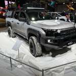 あいにくこのままの形での販売はすぐに考えてはいないそうですが、ランクルBASE(ランクルの製造を手がけるトヨタ車体が愛知県に持つランクル専門店)のブースには、需要の高いメッキバンパー、ウインチ、スノーケル、アルミホイールなど「年央に販売を検討している」ランクル70の海外仕様の純正部品も展示されていました。