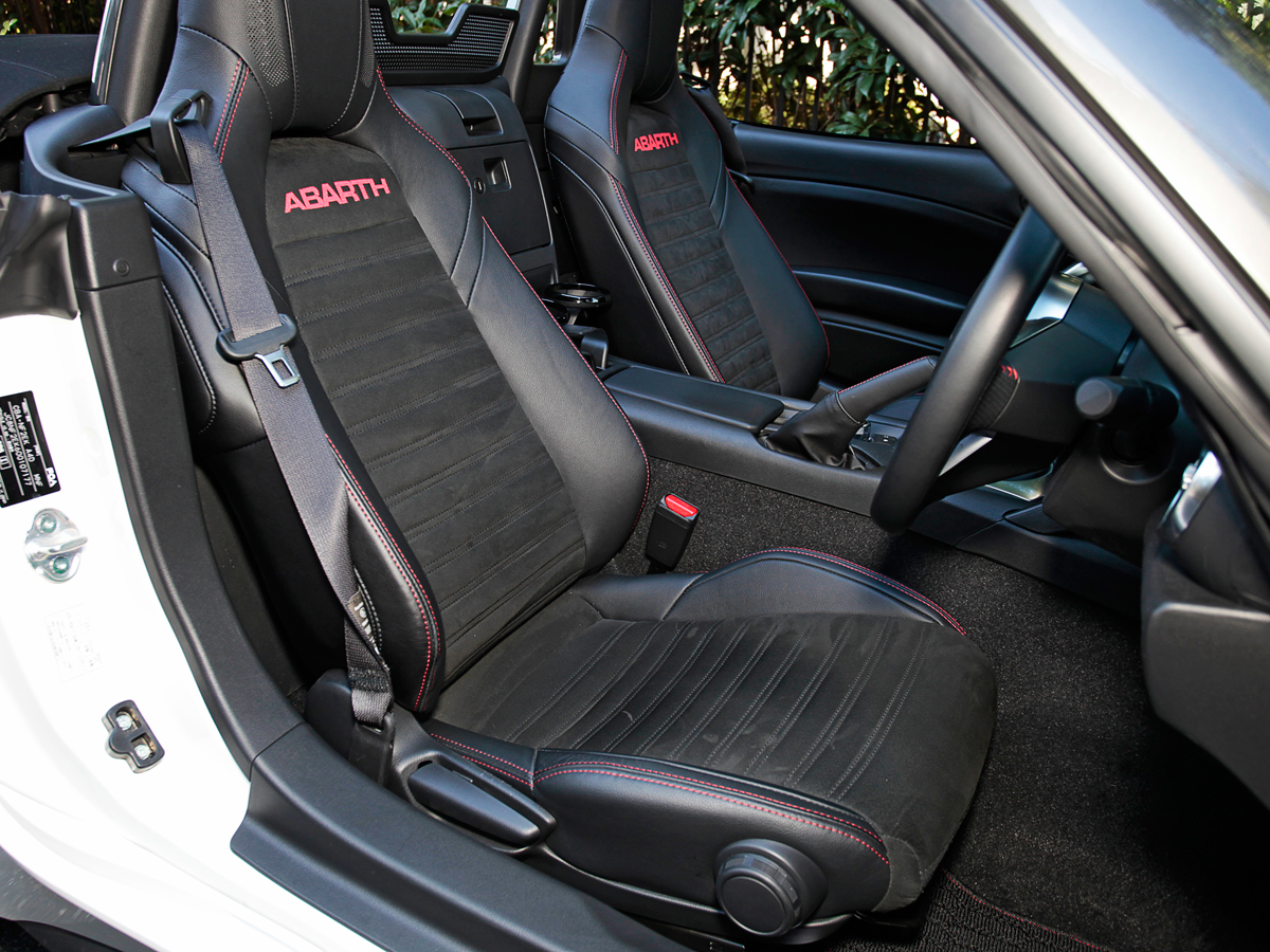 ハンドル位置はすべて右で、3ペダル式6速MTのほか、ありがたいことに(!?)、6速ATを選ぶこともできます。価格は、388万8000円(6MT)と399万6000円(6AT)。ロードスターで最もスポーティなグレード「RS」は319万6800円ですから、「プラス70万円ほどでアバルトが買える!」と考えれば、安いものかもしれません!?