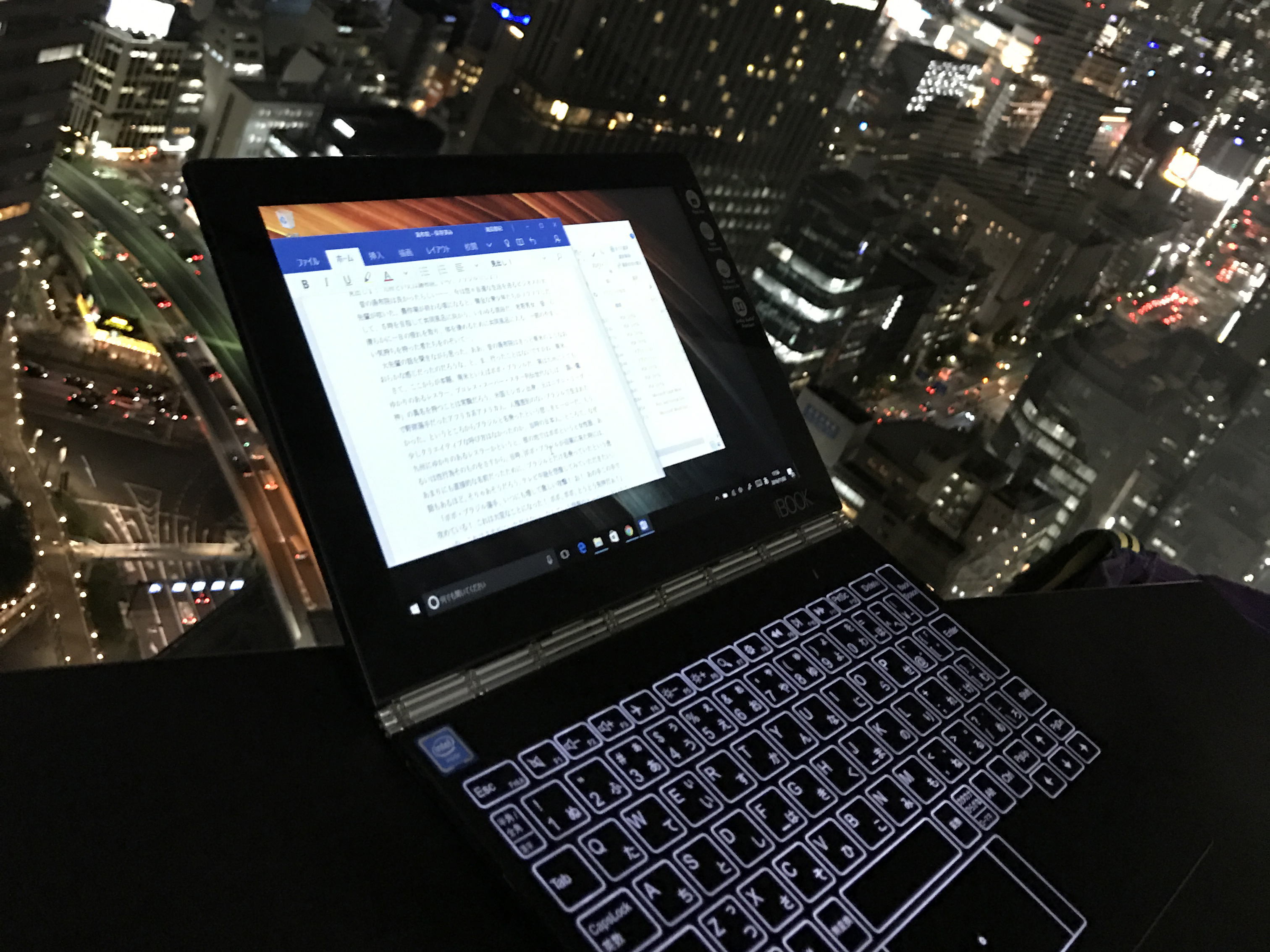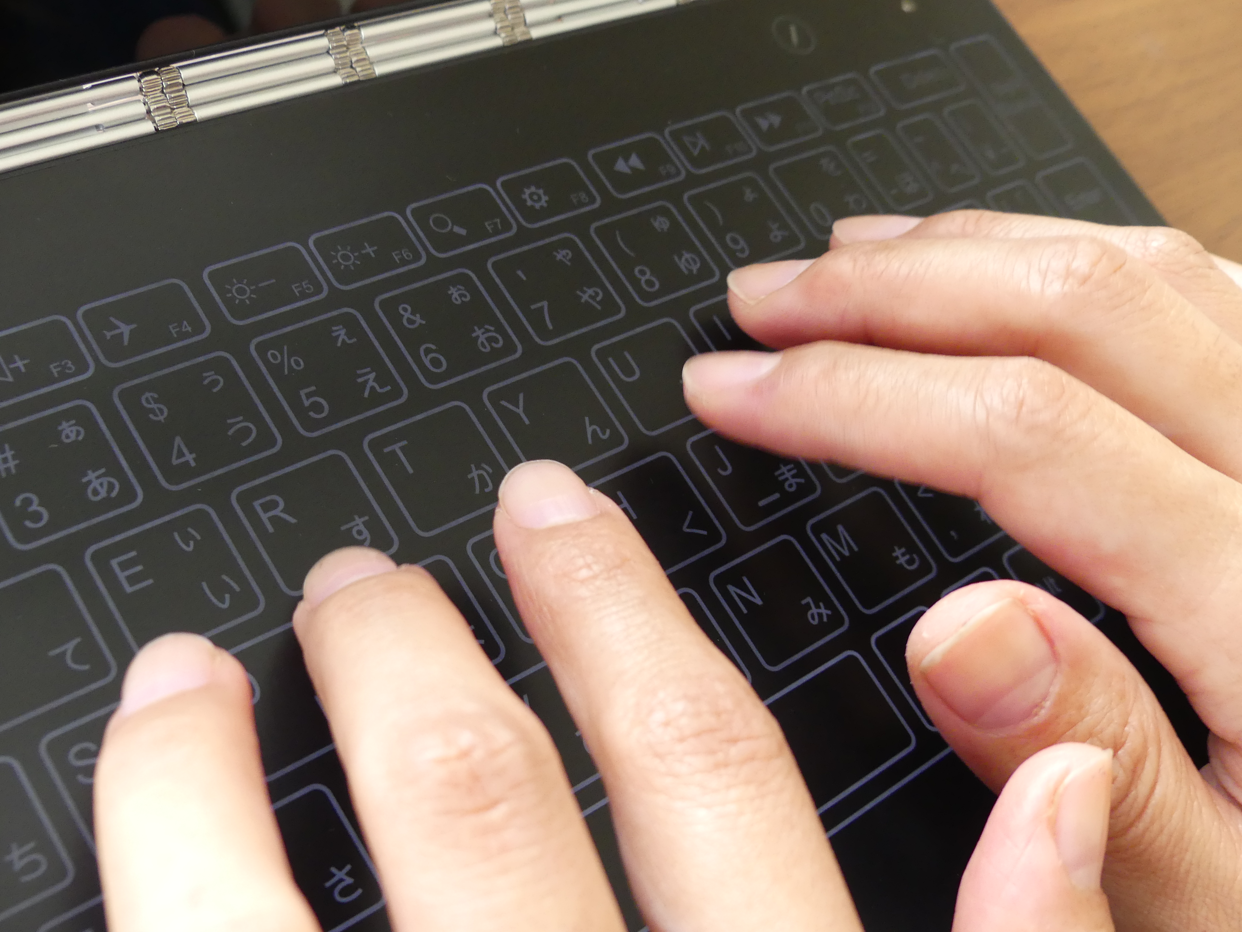 まあ正直、確かに打ちづらさはある。しかし、ことヨガブックに関しては物理キーボードを廃したことで得られるメリットの方が大事で、ディスプレイ最薄部は約4.05mm、重量約690gという持ち運びやすさに特化。そう、とにかく“軽くて薄くてカッコいい”ということだ。