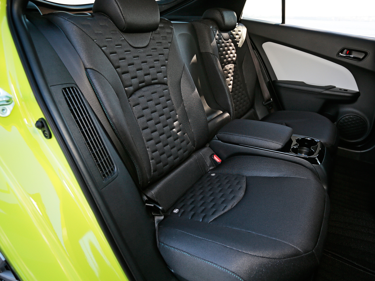 プリウスが乗車定員5名の実用車であるとしたら、プリウスPHVは、贅沢にも、より余裕を持たせた4人乗りです。左右に分かれたリアシートに座っていると、これぞ「技術立国のポリシーから登場した新世代カー」と感慨を覚えます(ちょっと大袈裟)。