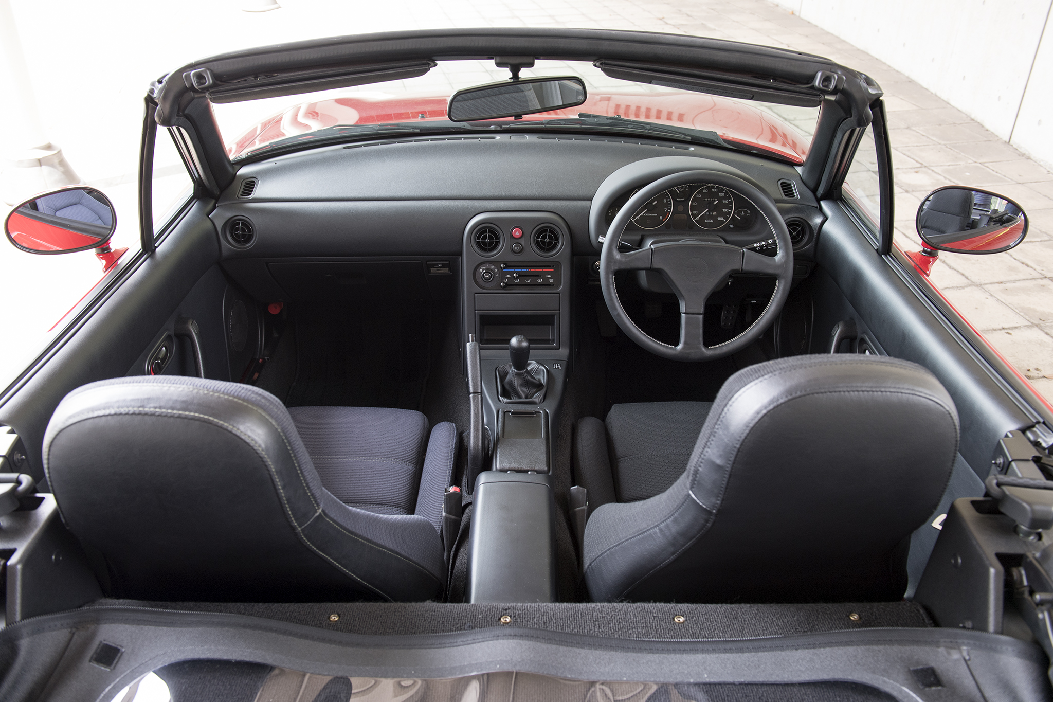 NAのレストアサービスでは、現在までにレッドとグリーン、2台のサンプルカーが完成。いずれも艶やかで鮮やかなボディカラー、ピシッと張りのあるソフトトップ、そして、わずかにリアが上がったオリジナルの車高など、新車当時の姿を知る人なら思わず膝を打つ仕上がりとなっています。