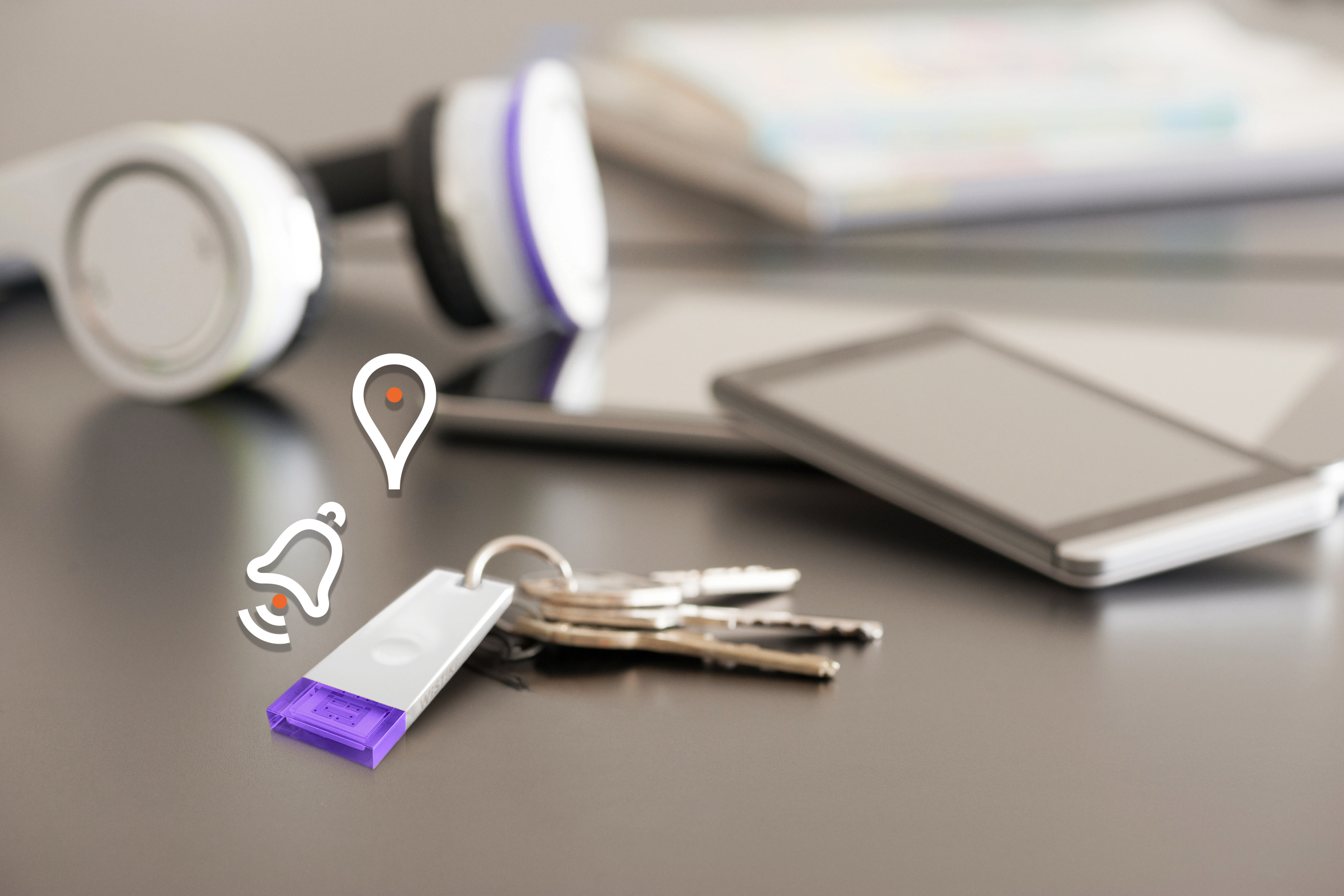 1.呼出音:Wistikiの最も基本となる使い方。無料の専用アプリからオリジナルのベルを鳴らして、探し物を見つけられます。90デシベルの音量と100Mの通信距離で、離れた場所にあってもしっかり見つかります。