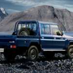 復刻版ランクル70は、バンに加えて日本初登場となるピックアップトラックも導入。大型のダブルキャブボディでデッキスペースは最大600kgの貨物を積載できます。
