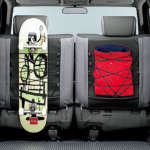 後部座席裏側にはバックパックのバンジーコードのようにスノーボードなどを固定できるコードがつけられたり、ロアテールゲートに楽に座れるシートバッククッションや、ラゲッジフロアのボードをテーブルとして使える脚も用意されました。