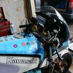同じく「GPZ750R」をベースにしながら、「GPZ1100RX」のクランクを使って排気量を拡大している大根田隆さんは、排気量上限のない「D.O.B.A.R. FOMULA ZERO」クラスに参戦。元々はノーマルのマシンで走っていたとのことですが、チューンナップに合わせて参戦クラスを変えてきました。
