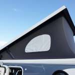 ルーフ部分には後部に展開するポップアップルーフを設置。ここに2名で就寝すると、計4名での車中泊を楽しめます。