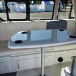 ダイネット時はもちろん、ベッド展開した状態でもテーブルを使用できるので、車内でゴロゴロしながら仲間と軽く一杯という楽しみ方もできそうです。