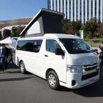 ベースとなる標準ボディ・標準ルーフのハイエースにポップアップルーフを架装した「ツェルトCP」。ポップアップルーフには断熱性と防寒性に優れたテント生地を採用しています。