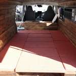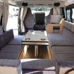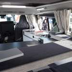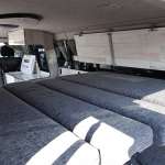 後席は横向き向かい合わせのソファ(ベンチシート)で、ベッドはマットを敷くだけで簡単に展開できます。就寝人数は2名なので、夫婦や恋人同士で楽しむのにピッタリな1台です。
