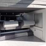 外観同様にインテリアもシックな色合いで構成。このインテリアは三河の家具職人が手掛けたもので、レジャー用途の他、ワーケーションや災害時のシェルターとしての用途も想定しているといいます。