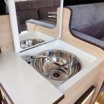 車両後方に設置されたミニシンクやリアゲートにつけるシャワーはオプション。「普段は出先の水道で十分だけれど、ちょっとした時に水が使えるとうれしい」という人は選んでおくと安心です。