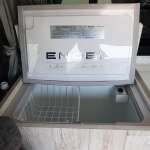 オプションでスポットクーラーを選ぶと、暑い夏にエンジンを切っても車内を涼しく保てます。電子レンジや冷凍室付きの49L冷蔵庫などは標準装備されています。