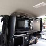 ベース車両の屋根を切ってハイルーフにしたことで、1760mmの室内高を確保。大柄な人でなければ車内で立ちあがることだって可能です。ミニバンベースの車中泊車は車内でかがんで過ごさなければならないので、キャブコンのような快適性を求める人には大きなセールスポイント。