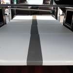 ベッドは大人2人が寝るのに十分な広さ。たとえばファミリーキャンプにでかけた時、テント+タープに加えてこのクルマがあると、ゴージャスな基地が作れますね。お子さんも大喜びしそうです。