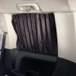 キャビンスペースのガラスを覆う遮光カーテンが標準装備なので、アウトドアでも快適な睡眠を取ることが可能。サブバッテリーはシャシー下に搭載されているので車内のスペースを犠牲にしません。