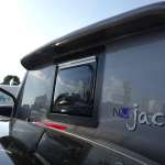 「NVジャック」もハイルーフ部分にマットを敷いてチャイルドベッドとして使えます。ハイルーフのリア部分にはアクリルウインドウを設置。高いところから採光できるので、日中は明るい車内で過ごせます。