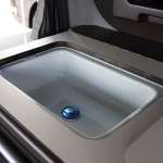 ラゲッジスペース右側には格納式のシンクを設置。ここにはシャワーがついているので、外遊びした子どもやペットの足などを洗い流してから車内に乗せることもできますよ。