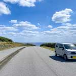「こちらもドラマのロケ地として知られる島南側の道路。南牧場では放牧された馬が間近で草をはむ姿が見られますが、彼らの落とし物にはお気をつけて。ちなみにレンタカー代は6時間で4000円ほど」