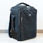 収納力も抜群で、機材一式はもちろん、タブレット、15インチまでのPCを収納可能。レインカバー付きで三脚も取り付けOK。重量約1.9kg。「このサイズのなかでは軽量なほう。機材一式(カメラバッグ、ミラーレス2台、広角ズーム、標準ズーム、望遠ズームと超望遠ズーム)を入れて約8kg。フルサービスキャリアなら持ち込みできます」
