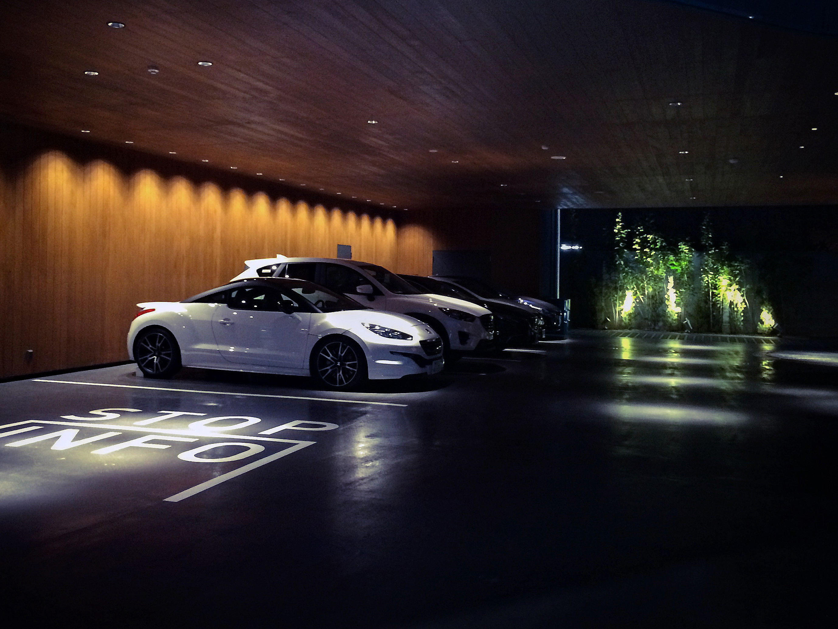 高級ホテルのファサードを思わせるパーキングスペースにクルマを停め、2階に上がる。凝った照明に照らされたクルマが並び、その脇には快適な商談スペースが。奥のカウンターでは淹れたての美味しいコーヒーも味わえる。
