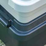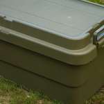 また、蓋についても上から被せる形で蓋を取り付ける仕様のため、雨や夜露に強いという点もキャンプに最適。完全防水とは言わないまでも、多少の雨なら中をドライに保てますし、秋冬キャンプの大敵、夜露からも中身を守れるので、タープ無しのキャンプスタイルでも荷物を濡らさずに安心してキャンプを楽しめます。