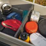 ちなみにモジュールシステムについては、「気軽に遊びに出てほしい」という岡村さんの思いも詰まっています。岡村さんは、アウトドア関連の道具をすべてカテゴリーごとにボックスを分けて収納しているそうです。