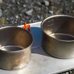これはエバニューの「チタンクッカー」だけでなく、チタン製クッカーすべてに共通することですが、チタンには“軽くて丈夫”というだけでなく、“熱伝導率が低い”という特徴もあります。簡単に言えば、熱が伝わりにくいという性質。