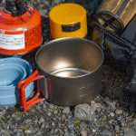 「個人的にここ最近お気に入りの「チタンクッカー」となると『Ti 570FD Cup』(3190円)ですね。食事時のちょっとした煩わしさを抑え、口当たりと水切れもよくなりました。目盛りもインスタントヌードル用の330ml、アルファ米用の160mlを取り付けました。自分でも使っていてかなり便利です」