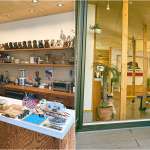 ▲写真左:1階のカフェカウンター。ヴィンテージ感のある天然素材キッチンまわりでの白や青の色使い、照明や雑貨など、自宅でも真似したくなるような西海岸風の空間作りのヒントが満載! 写真右:看板犬のTORUSとJUNIPERが店頭でお出迎え