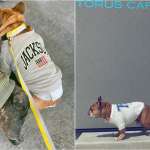 ▲写真左:アメリカ・古着・サーフ・スケートボードなどの理念をペットブランドとして展開する「ジャクソンマティスペット」 写真右:「TORUS CAFE×ジャクソンマティスペット」のコラボTシャツは、カフェ店内にディスプレイされているヴィンテージのブルドッグの貯金箱がデザインソースに