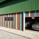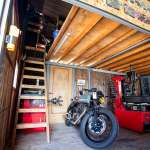 さてガレージが完成してオンデュリンの裏側が黒いため暗かったのでのちにOSB鋼板を貼って壁面を造作するなどガレージは年月とともに進化を遂げている。中2階にはクルマのパーツを保管するための収納スペースがあり木造の階段により行き来ができるなども工夫している。親子でクルマに携わっている仕事をしていることから、溶接技術などの特殊な作業ができるもTさんの強み。
