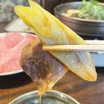 すき焼きの割下をめぐってはザックリ「関東風は塩っぱめ」「関西風は甘め」なんていう慣習の違いが語られることがあります。筆者は東京出身の一方で個人的には甘めの割下のほうが好きなのですが、「ちんや」のそれは好みピッタリの甘め傾向。これがまた絶品で、赤身、サーロインともに肉本来の旨みを引き出してくれるように感じました。