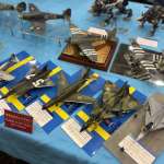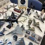 空母搭載の機体ということもあってA型、B型とは別の機体と言っていいのがC型です。キットは折りたたみ機能を持つ主翼が差し替えで、展開時と折りたたみ時のどちらも再現可能となっています。また艦載機らしいダブルタイヤになり、太く堅牢になった前脚柱、機首右側面にある空中給油プロ-ブも展開/収納状態も選択式で再現できます。会場ではC型独自のギミックが詳しく解説されていました。『達人のプラモ術』では以前、B型を製作紹介しているのですが魅力的なC型も作らないといけませんね。