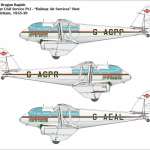 DH.89ドラゴン・ラピードはイギリスのデ・ハビランド社が開発した双発輸送機ですが、主に近距離旅客機として運用されていました。初飛行が1934年なので、先に紹介のユンカースF13よりもちょっと後の時代のエアライナーとなりますね。