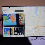 特徴をざっくりと紹介しておきましょう。ディスプレイは10.2インチ(2232×3184ドット)で、山折りと谷折りの組み合わせで三つ折りにできる仕組み。閉じた状態では6.4インチ(2232×1080ドット)のスクリーンを利用でき、フツーのスマホのように操作可能。本のように開くと7.9インチ(2232×2048ドット)のスクリーンが現れ、Webやマップ、ドキュメントなどの視認性がグンと向上します。さらに、山折りで裏向きになっている部分を手前に向けると10.2インチのフルスクリーンに。もはやタブレットと呼ぶべき画面の広さで、マルチウィンドウ操作も快適に行えて、キーボードを用意すれば、ノートPCライクに使うこともできます。
