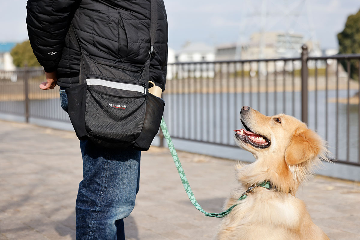 もちろんハーネスなどは愛用しているのですが、お気に入りは「ドッグウォーカー ショルダー」です。これは毎朝の散歩の際に水や犬用のお菓子、トイレグッズなどを収納するために必要なバッグなのですが、実際に使っていく中で自ら使いにくさを感じた箇所などをフィードバックして現在の製品に至っています。