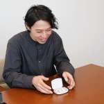 ▲まるで我が子のようにATH-AC5TWを愛でる、オーディオテクニカ 商品戦略部グローバルプロダクトマネジメント課の中子正也さん。 「スポーツ用としてはいませんが、防滴仕様でもあり、軽い装着感でありながらジョギングでも快適に使用できました」。繰り返しますがATH-AC5TWはスポーツ用イヤホンではないので、お間違いなきよう~