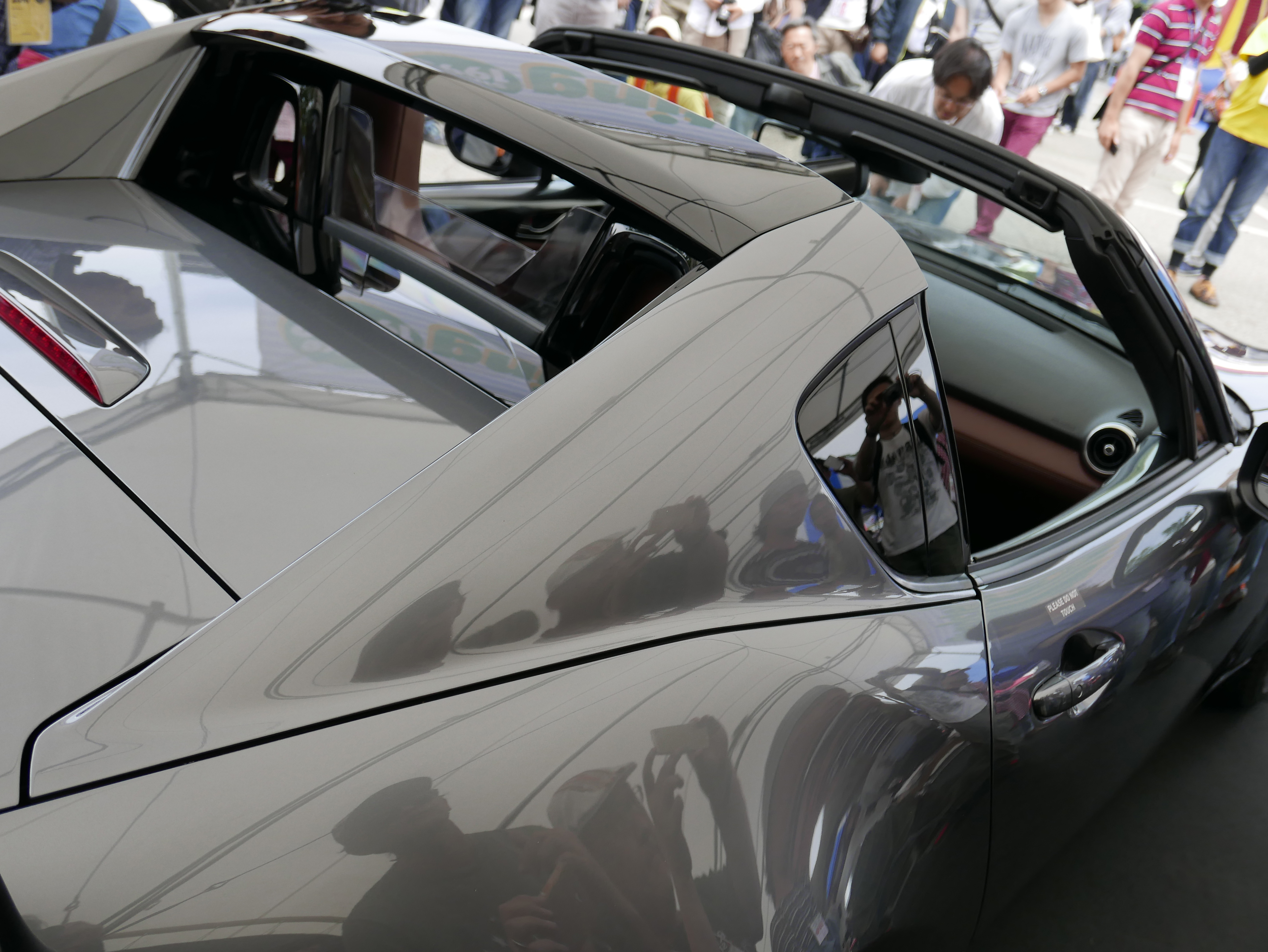 その樹脂も、一般のプラスチックとは異なり“SMC(シールド・モールド・コンパウンド”という素材を使っています、SMCの方がコストは高くつくのですが、成形してからの縮みが少なく、熱膨張も小さいんです。一般的なプラスチックはローコストですが、熱膨張が大きいため、ほかのボディパーツとのすき間を大きめに確保しておかなければなりません。例えば、ドバイとか気温の高い地域だと、すぐに膨張してしまいますからね。バンパーのように、仮に膨張しても逃げの部分があればいいんですが、RFのハードトップは各部をギリギリまで詰めた設計にしたので、逃げられる部分がないんです。