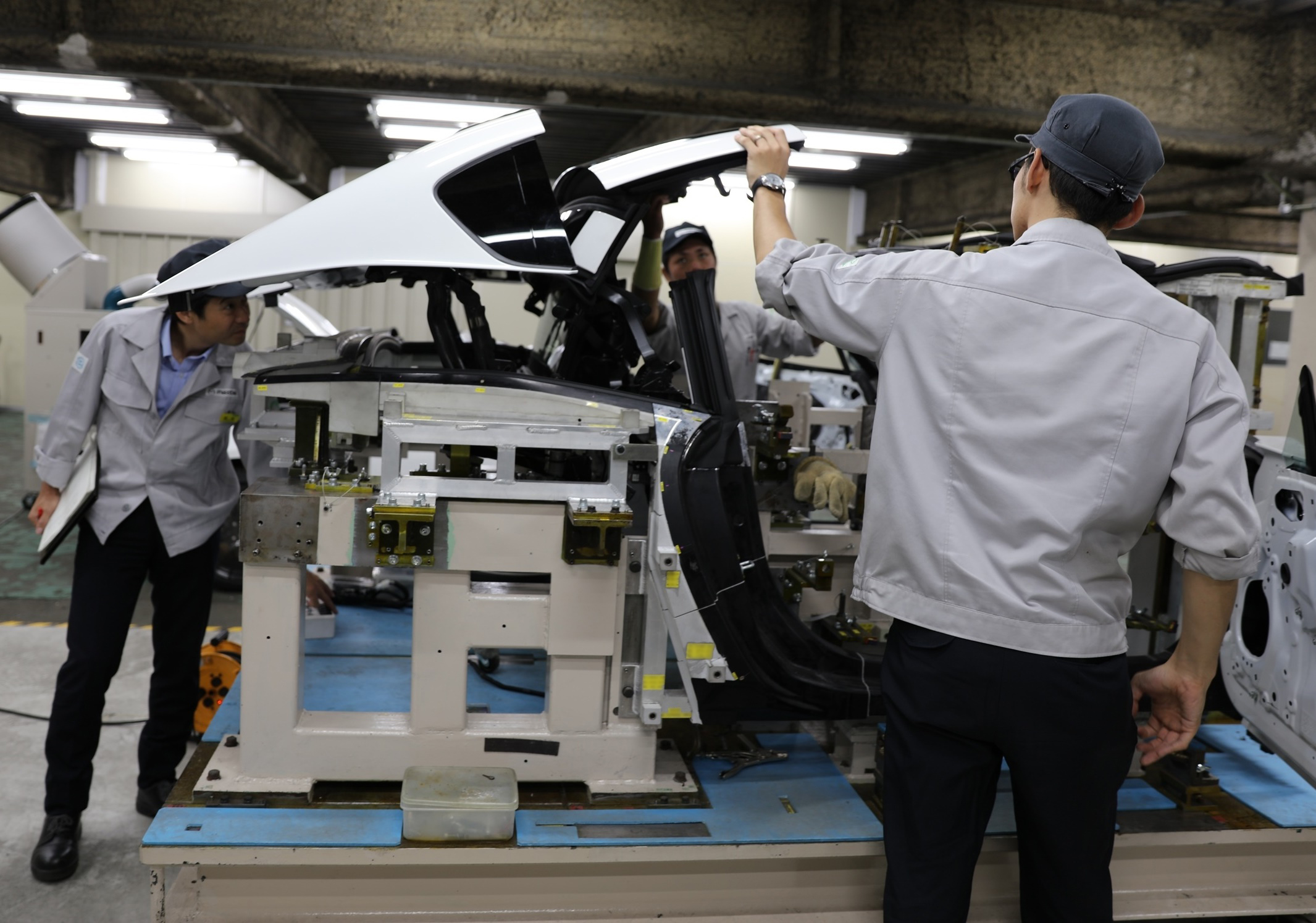中山:私は、エンジニアの技術力を信じていましたから、カタチにできると確信していました。RFのハードトップを折り畳むメカの構造は、NCのそれと基本的に同じものにしようと考えていたので、デザイナーたちはその時点で、完成形を想像できていました。だから、すぐに3Dデータを作り、それを今度はアニメーション化して、ルーフの動きをエンジニアに見せたんです。アニメとはいえ実際の映像を見てしまうと、カッコいいですからね。チームのモチベーションが上がります。「絶対に完成させるぞ」と。
