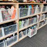 ▲ヴィブラムジャパンのショールームの棚には、さまざまなデザインのソールが所狭しと収められている