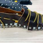 ▲接着剤を使用していないシューズ。アッパーをヒモで留めている