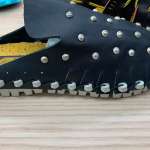 世の中にデザインとコンパウンドが一緒の靴というのはあるのですが、デザインが同じでコンパウンドが違うというのはほとんどなく、純粋にコンパウンドだけ比較しようとおもったら、同じデザインじゃないとダメなんですよね。この靴はソール部分がマジックテープで剥がせてコンパウンドを変えることができる靴なのですが、いまは左右同じデザインで用途が違うコンパウンドがついています。