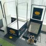 ▲こちらがPOP UPなどで使用されている体験機材。右が濡れた岩上、左が濡れた氷上をリアルに体験できる機材