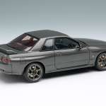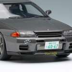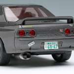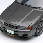 今回、メイクアップがモチーフに選んだのは、田村氏が新車時から最高速310km/hオーバーマシーンへと育て上げたR32 スカイラインGT-Rである。綿密な実車取材を行い、R34スカイラインGT-R用のホイールやそのスポーク越しに覗くN1耐久仕様(現・スーパー耐久)のブレンボ製ブレーキやNISMO用エアダクト付きバンパー、フードトップモール、氏自らが設計を行ったとされるワンオフマフラー、大容量インタークーラーの他、やや下げられた車高など細部まで再現されている。