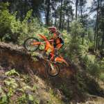 実際に試乗していても、極低速で走るようなシーンでも粘るようなトルクを発揮してくれて、4ストのエンデューロマシンと比べても乗りやすいと感じるほど。特に「TE 250」は半クラッチを使うシーンもほとんどないほど低速トルクがあり、エンストの心配もないので安心して乗ることができます。2スト250ccの競技モデルにはハイパワーだけどピーキーというイメージがありましたが、そのイメージは完全に覆されました。