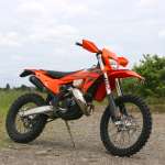 そしてアクセルを開ければ瞬間的にワープするようなパワーを取り出すことができます(「150 EXC」で最高出力は39PSほどだとか)。いわば、どこからでも一瞬でパワーバンドに入る感じ。この瞬発力も過酷レースシーンで2ストが支持されている理由です。その加速感は4ストエンジンとは明確に異なるもので、排気音や鼻に届く2ストオイルが焼ける匂いも昔からの2ストファンにはたまらないものでした。