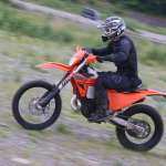 150ccと250ccの2種類の2ストエンジンを味わってみましたが、どちらも低回転から粘りがある点は共通。どちらかというと、150ccのほうが2ストらしい伸びを味わえて、250ccの方は低回転域からそのまま爆発的に加速できるような特性でした。個人的には250ccの方が乗りやすく感じましたが、これはリアサスペンションがKTMのほうがリンクレスで、ハスクバーナはリンクタイプを採用していることによる影響もあるかもしれません。