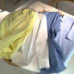 ▲左からOrganic Cotton、Suvin Cotton、Suvin Cotton Striped、そしてSoft Broadclothのサンプルシャツ